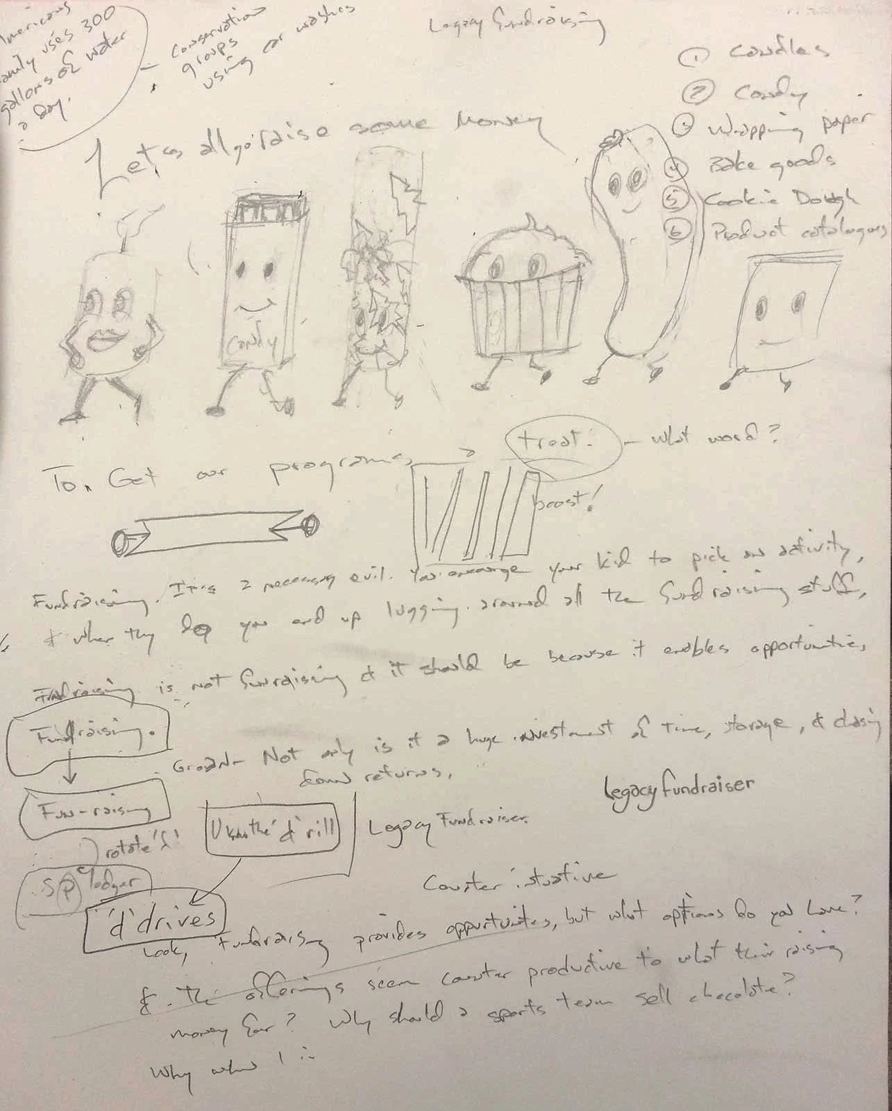 I was asked to develop a style like the old ‘Let’s all go to the lobby’ 1950’s intermission movie ads that could be turned into campaigns that included several videos. Researching led to bizarre contrasts that a sports team would peddle sugary candy or an environmentally conscious debate team would reward donations with giftwrap. I was beginning to toy with taking the ‘d’ out of fund-raising, then you remove the difficulty & spend more time on fun-raising, but then…