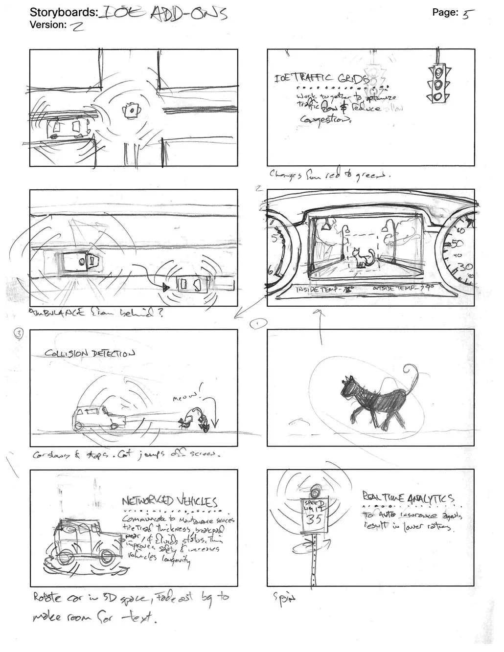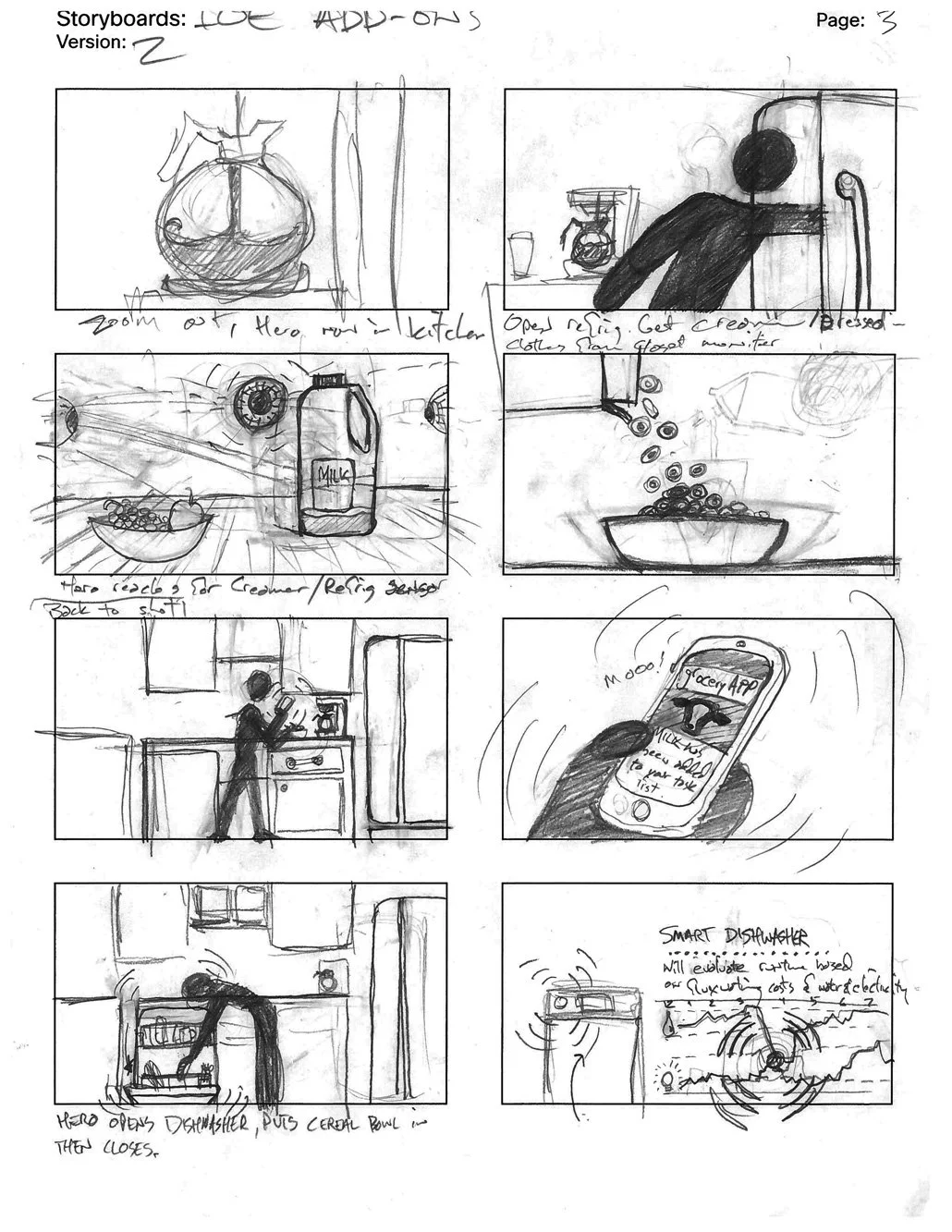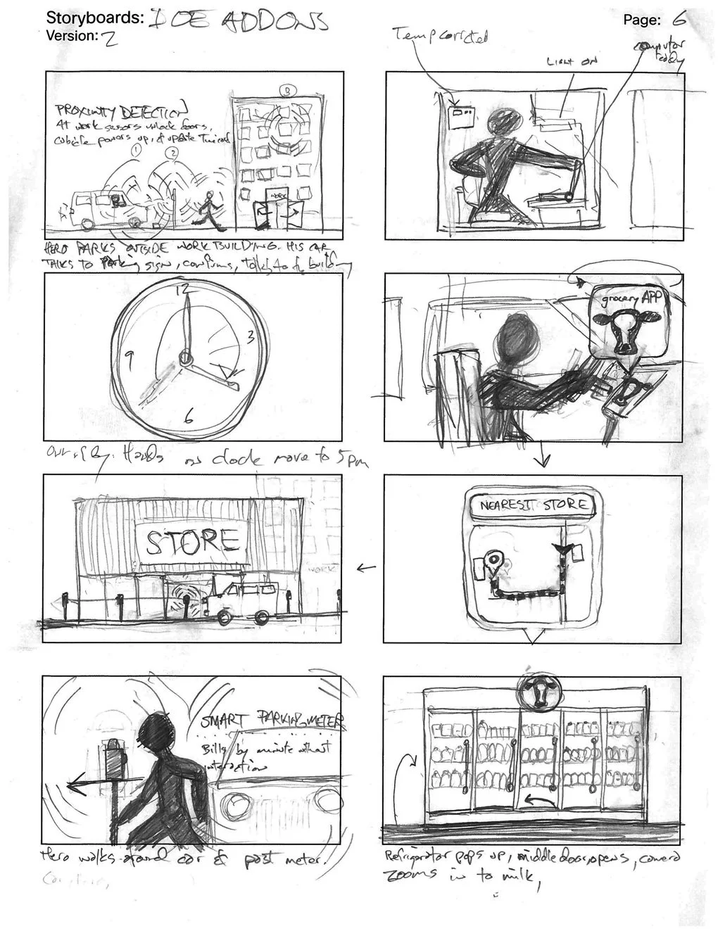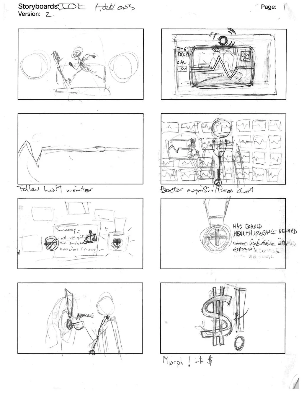 After the script was locked, I sketched out the storyboards using pencil & paper.